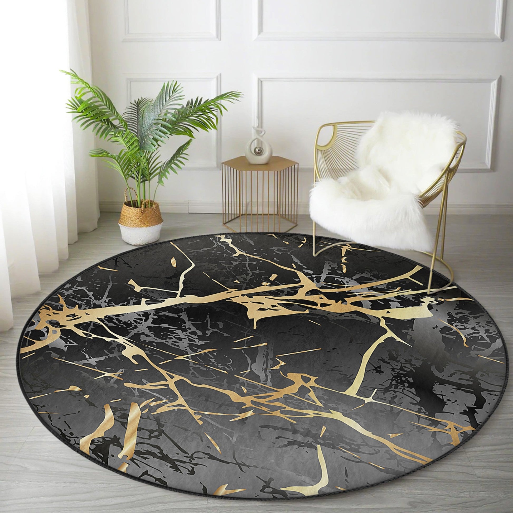 Black Marble Luxury Design Home Decorative Washable Round Rug |